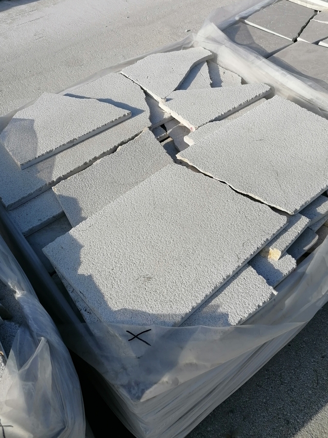 Gris Zarci stone tiles 80x60x2 cm bushammered and brushed.