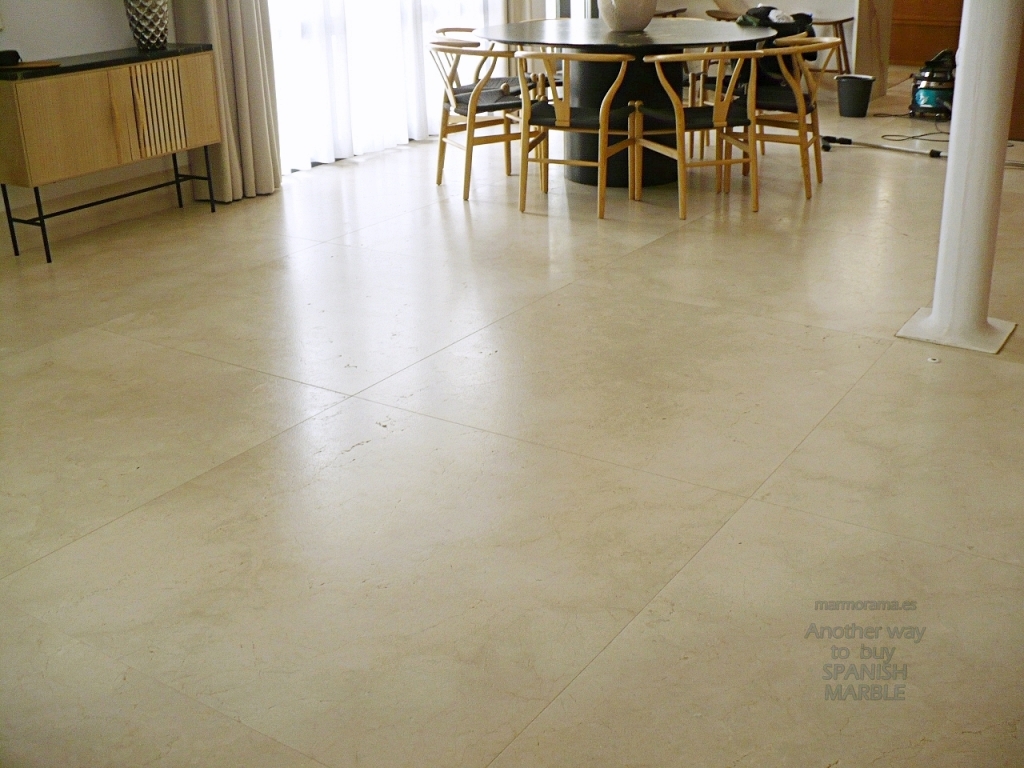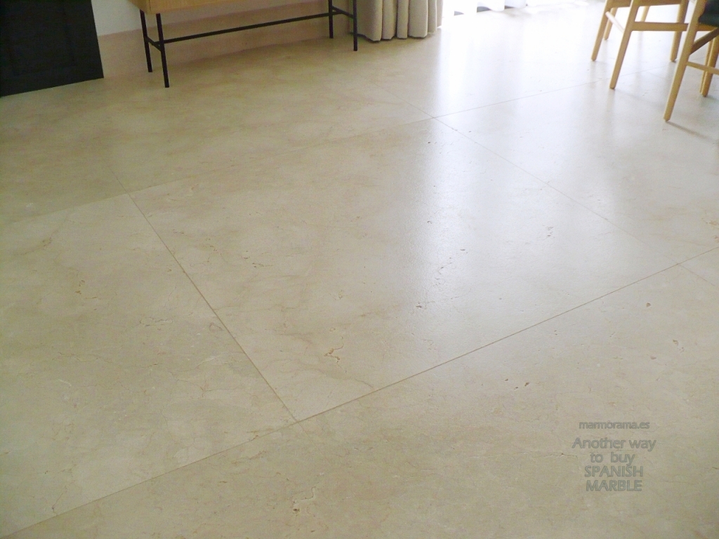 Marble flooring in Crema Marfil leather finish becomes ideal for villas in which the light is the fare around which turns all the aesthetic idea.