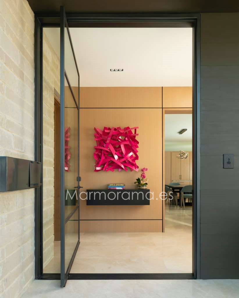 In size 90×60 in 2 & 3 cm for being used in interior and exterior areas. This project was made using similar blocks for maintaining the tone of color and brushing the surface for achieving a taste of soft rustic appearance for its conversation with the straight and modern lines of furniture and other elements.