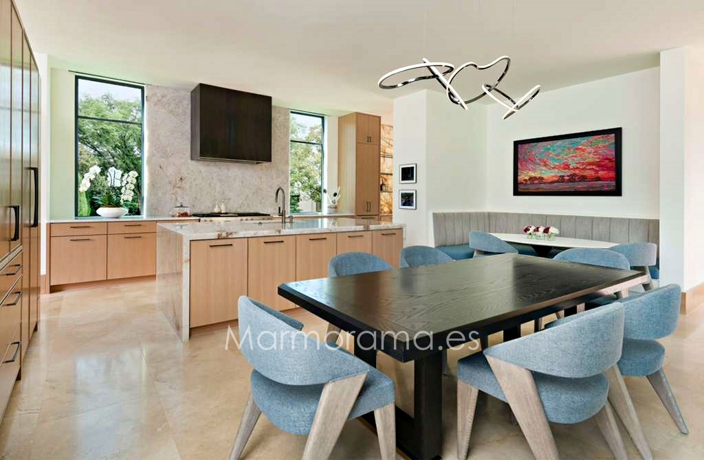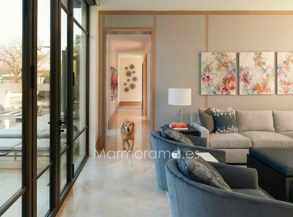 At October 2024 we received and manufactured Crema Marfil marble in brushed finish for a project in Texas (USA).