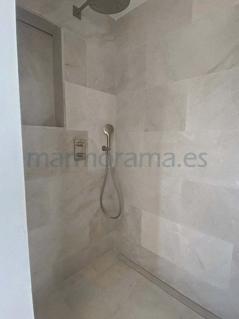 In this case the project was focused on a rectangular size, Gris Zarci stone tiles in 80×40, able to cover big areas without being complicated to install.