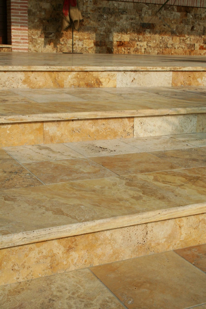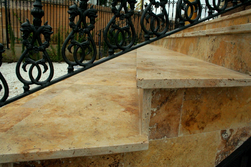 In this case a stair in Travertine Gold was ordered, with treads in 3 cm and risers in 2 cm, brushed finish.