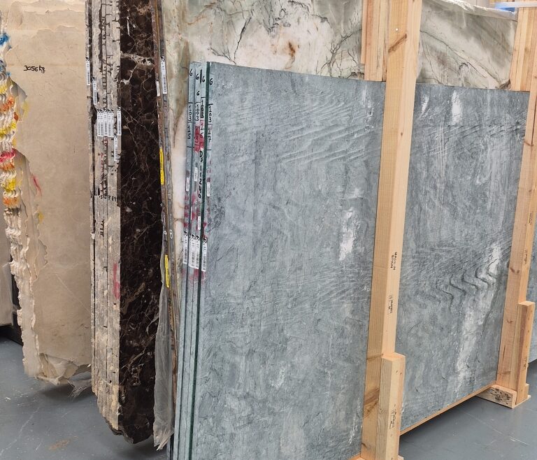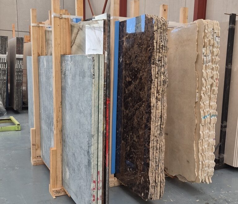 Container was filled with luxury marbles in green background and Crema Marfil & Dark Emperador Spanish marble.