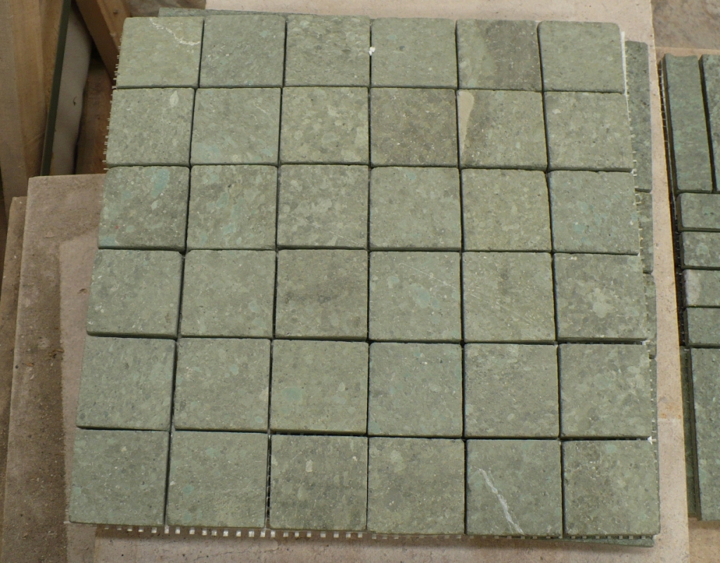Green Sukabumi stone tiles in sizes 10×10 & 20x20x1 cm. Also named Piedra Hijau, has a volcanic origin, with a greenish homogenous pattern. It has natural benefits as purifier of pool waters for its component Zeolite. It is very demanded for cladding of swimming pools as it provides an exotic green design that transports us to the Asiatic luxury ambience.