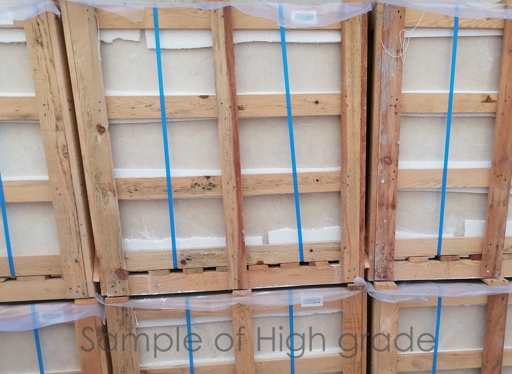It is a scarce dimension, as it is produced from the slabs that are not suitable to be sold as such and cut in the most fitted size. Usually there are both types available, the high range and the low one, that can be used in the same project in different areas, but now only the Medium range is available, around 150 m2.